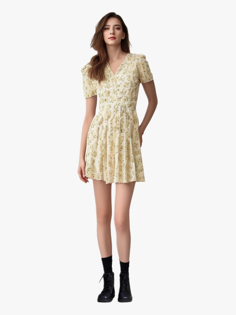 Este vestido francés ajustado con escote en V y mangas abullonadas está lleno de estilo francés elegante y romántico.